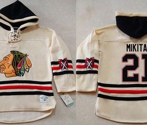 NHL Hockey Blackhawks #21 Stan Mikita Cream Heavyweight Pullover Hoodie Stitched NHL Jersey