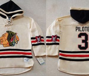 NHL Hockey Blackhawks #3 Pierre Pilote Cream Heavyweight Pullover Hoodie Stitched NHL Jersey